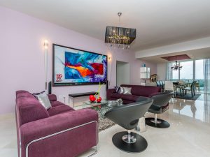 Enter through your private elevator to this beautiful fully furnished, interior decorated 3 bed/3.5 bath. Breathtaking panoramic views of the Atlantic Ocean and the Intracoastal waterways from every room. Enjoy the modern decorated living and dining room that opens to balconies on both sides. Ample Italian kitchen, granite counter-tops, high-end appliances, breakfast area and additional access to the property. Designer details continue to the master bedroom with sitting area, walk-in closets and ample beautiful bathroom. Additional bedrooms with all the comforts needed. Amenities with 24-hour concierge and valet parking, fitness center, spa, beach front cabanas, covered parking, heated swimming pool and much more with the white sandy ocean frontage of the amazing Sunny Isles Beach.