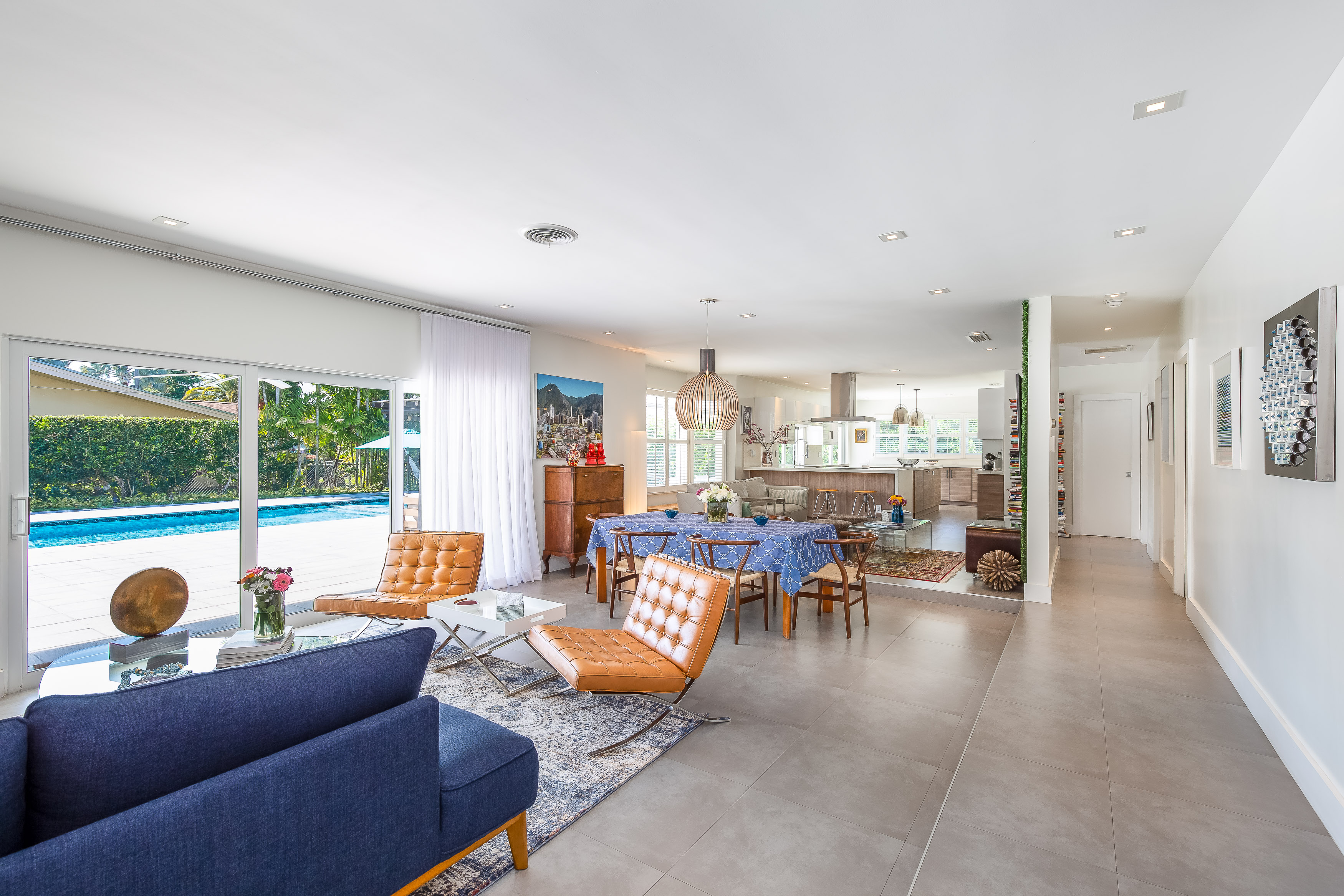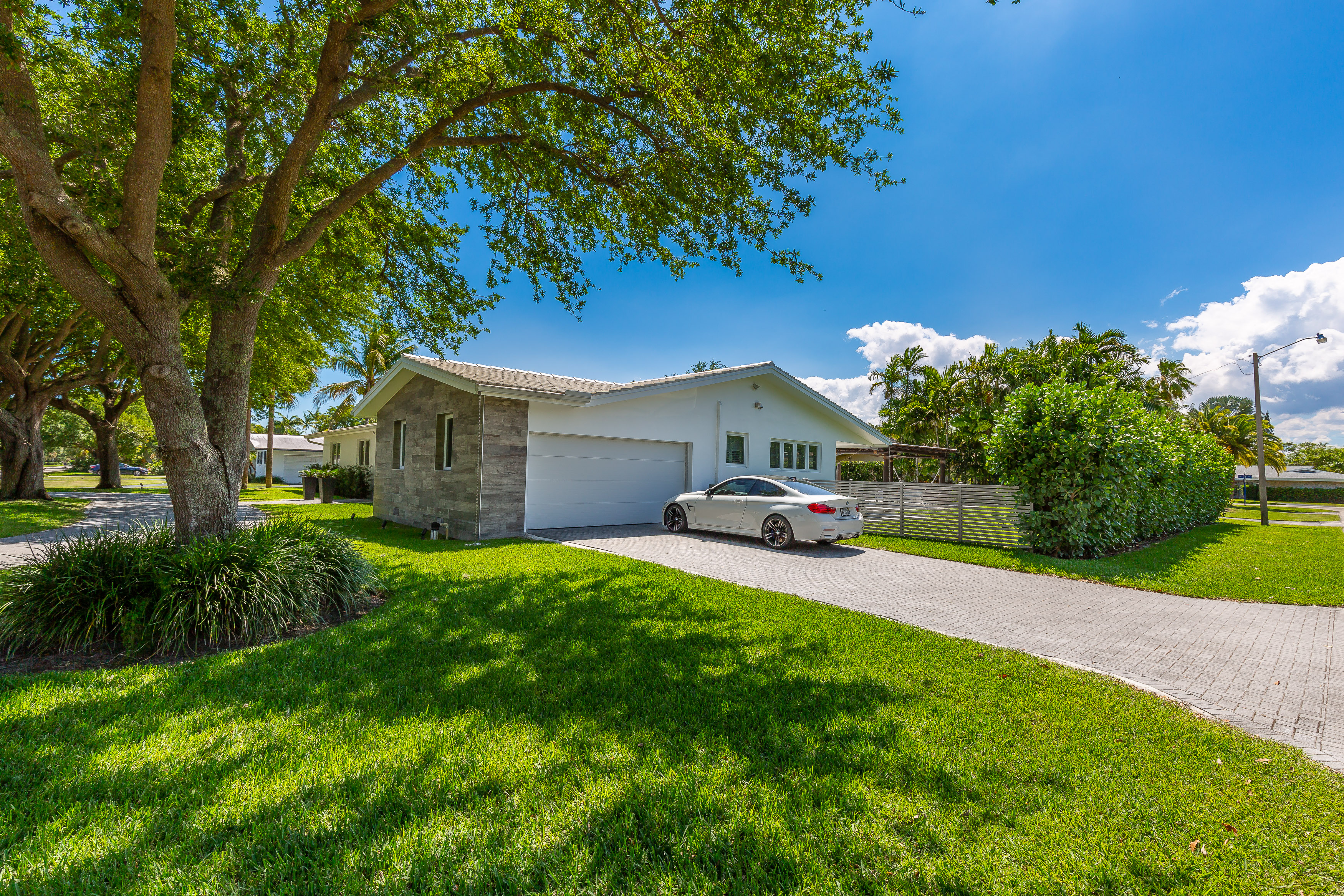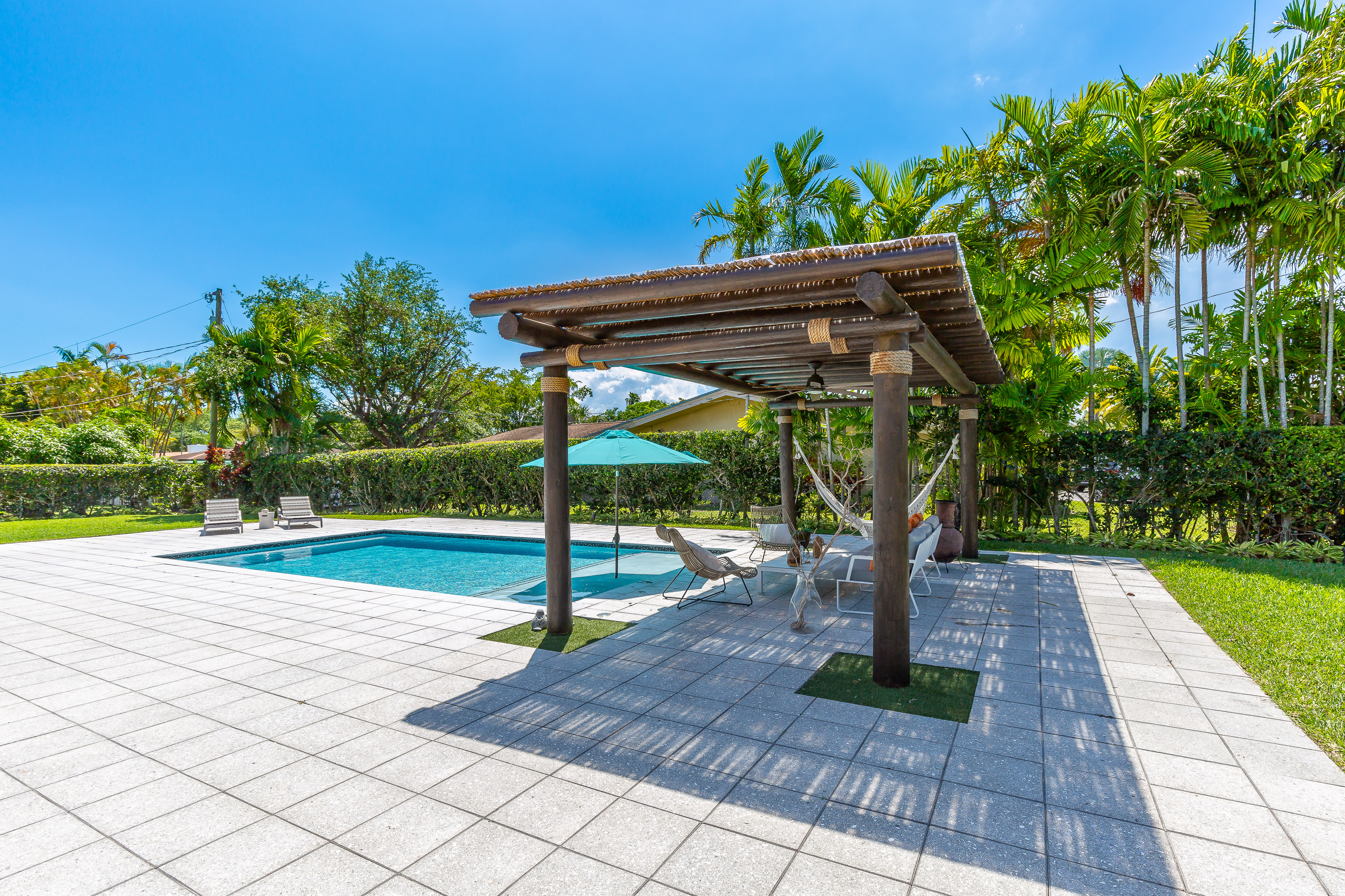 Tastefully renovated, this wonderful one-story pool home sits on a fenced in 16,356 sf corner lot with beautiful tall hedges. Redesigned layout with open concept, lots of natural light, new kitchen with custom cabinetry, island, SS appliances and Quartz counter tops. Large impact windows provide for a perfect integration with the beautiful backyard, covered patio, Gazebo, and sparkling saltwater pool. This wonderful home feels right the moment you walk in. Some of the great futures includes 7-year old roof, updated electrical, plumbing, new bathrooms, recessed LED lighting, new floors, impact garage door, sprinkler system, new exterior fences, custom gates, new pavers driveway and more. 3,210 Adjsf. A+ schools: Howard Drive Elementary, Palmetto Middle, Miami Palmetto Senior High.